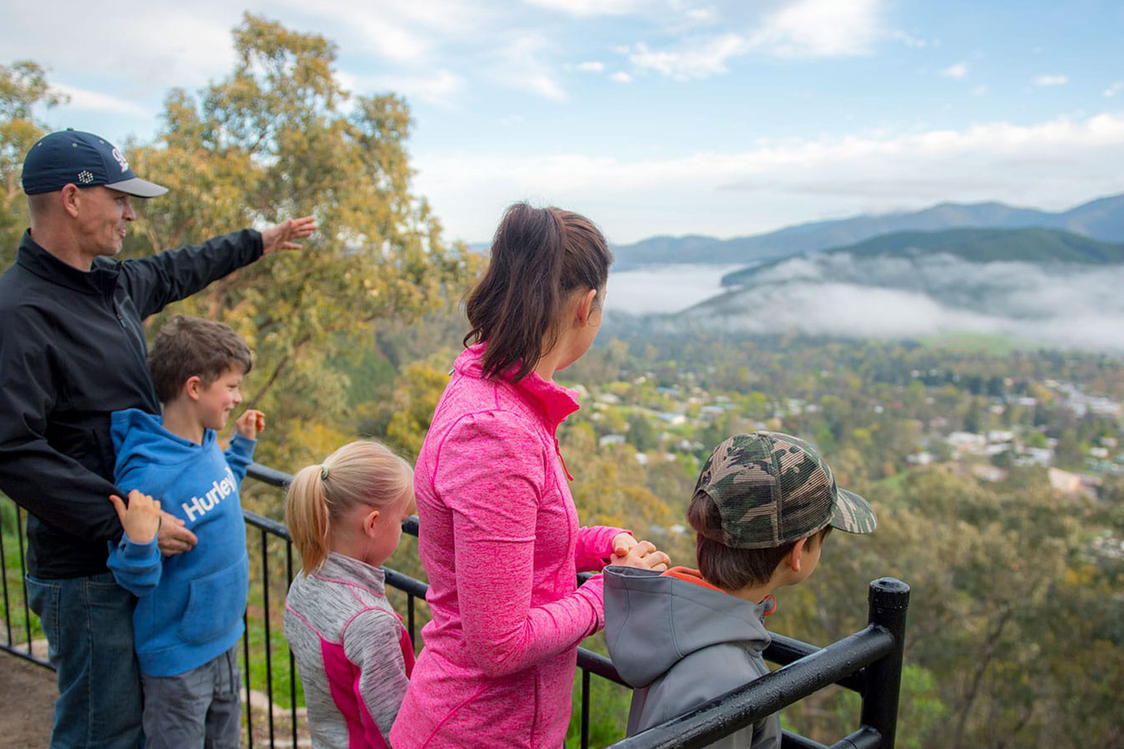 Huggins Lookout offers some of the best panoramic views over Bright, Porepunkah, and the Ovens Valley. Just a short but steep walk from the centre of Bright, this trail rewards you with sweeping vistas that are especially beautiful at sunrise or sunset.