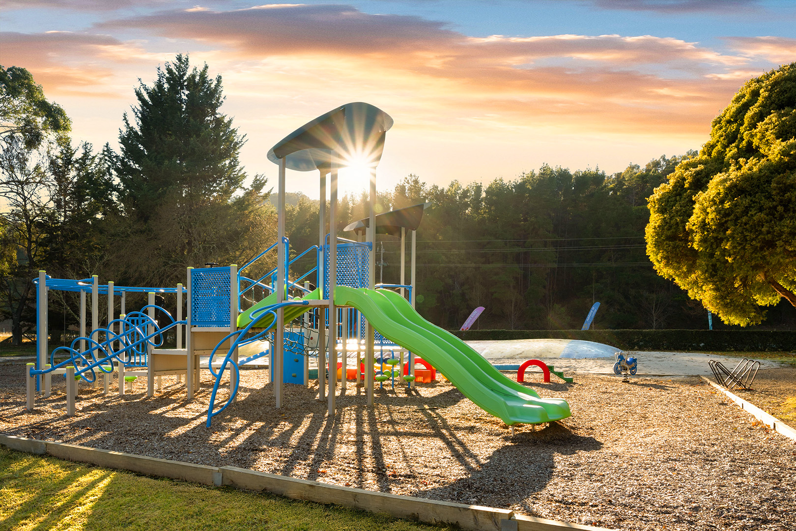 Looking for a holiday park with a playground near Bright, Victoria? At Bright Porepunkah Holiday Park in Porepunkah, our adventure playground is the ultimate play zone for kids — and a relaxing break for parents. Located right in the heart of the park, this fun-filled area includes climbing structures, swings, slides, and plenty of open space to burn off energy and make new friends.